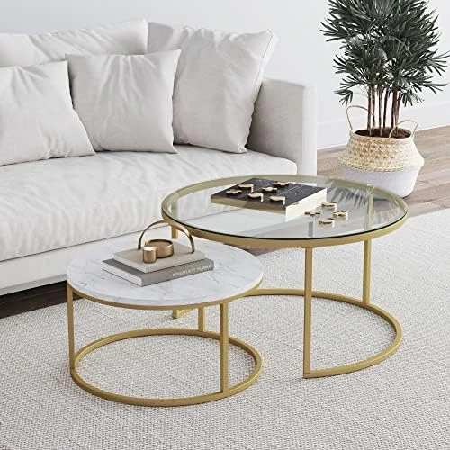 - Use the Stella nesting metal coffee tables separately or stack them together if needing more walking space in your living room when guests come over.
