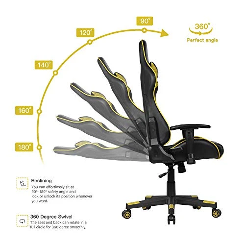 - ➤Multi-function 90-180 degree adjustable backrest, Seat-height and armrest adjustable,360° swivel round base, Tilt lock function, removable headrest pillow and lumbar cushion.