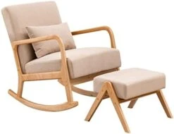 - ERGONOMIC DESIGN – High backrest and cozy armrest small rocking chairs for small spaces. The baby rocker chair for nursery can give you strong support for your whole body. Wide and high backrest provides you with great comfort and when you lean on it or rock it. What’s more, the thick cushion and padded rocker glider chair for nursery, matching with a soft waist pillow and a ottoman, which is more comfortable and ergonomic.