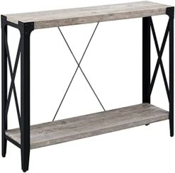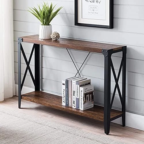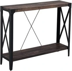 - 【DURABLE】The wood tabletop can easily hold up to 50 lbs, you can easily use it to place desk lamp, plant, photo frame, decoration ect. Adjustable feet allows narrow sofa table stand stable even on uneven ground. 22.84” height between the tabletop with bottom shelf offers enough display place.