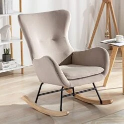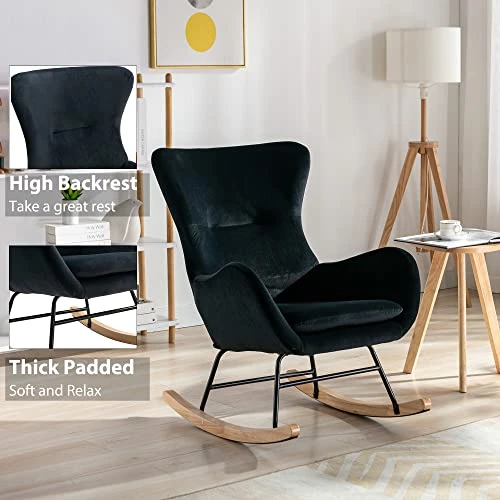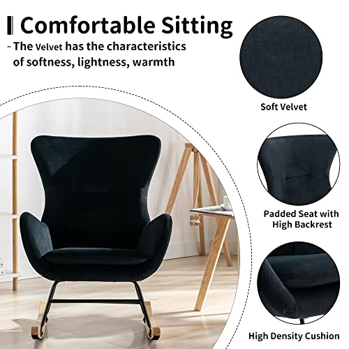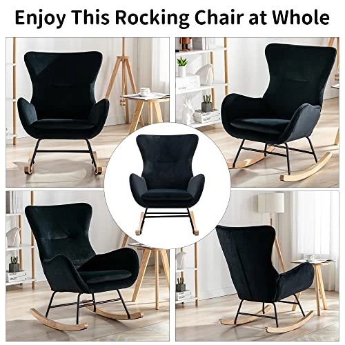 - 【Comfortable Sitting】This rocking chair is made of fabric and upholstered seats, ergonomic back, and seat cushions, and a built-in highly elastic sponge, which is more comfortable and will not deform for a long time.