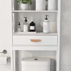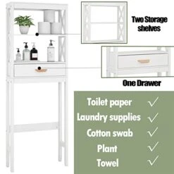 - Small shelf but great storage capacity:The over toilet bathroom organizer you can store your items according to your needs,such as toilet paper,hand soap,shampoo,and any other you can imagine.equipped with a separate drawer at the same time, can storage your private belongings,never worry about the mess in your bathroom anymore.