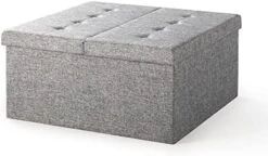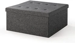 - EASY SET UP & FOLD AWAY: designed to fold into a flat board and can be stored inside the lid. Super easy setup: simply unfold, position base piece and cover. Sets up in seconds into a sturdy and stable storage ottoman bench