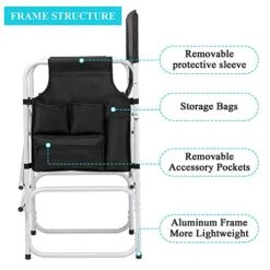- 【Humanized Design】This director chair has a folding table on the right side, which can put food and personal items within reach. In addition, as a makeup chair, there is a storage bag on the other side, you can put cosmetics in the bag for easy access.