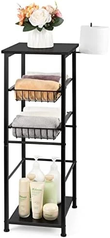 - 【Drawers & Paper Hanger】: To meet different storage needs, our toilet paper holder stand is designed with 2 shelves, 2 drawers, and 1 paper hanger. Multiple tiers provide large space to hold your daily essentials and keep your bathroom neat and well-organized. What’s more, 4 adjustable foot pads are also provided to strengthen the stability and avoid scratching the floor.