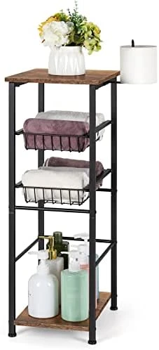 - 【Stylish and Sturdy】: Made of premium MDF board and sturdy metal material, this bathroom storage cabinet is sturdy, durable, anti-rust, and easy to clean with a wet or dry cloth. The classic rustic brown board and black metal frame would definitely make our bathroom towel storage organizer a beautiful eye-catching decorative shelf in your house.