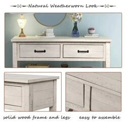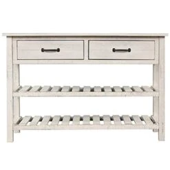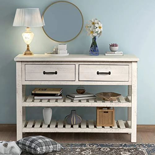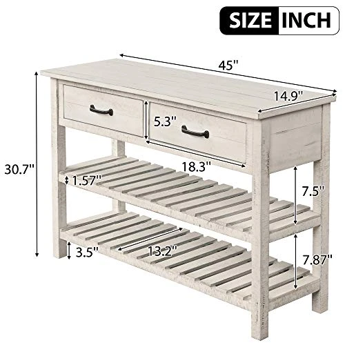 - ☛LARGE STORAGE SPACE: Size: This sofa table features with its two complete storage drawers and large open slatted lower fixed shelves. You can place bowls, plates and vases or anything you want to place.