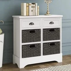 - ☛ POWERFUL STORAGE: This cabinet combines 2 drawers and 4 classic rattan baskets to bring more flexibility to your everyday storage. The 2 drawers are perfect for storing small personal items like keys, cell phone, etc. 4 rattan baskets can be used to store some frequently used items for your daily access.