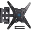 - TEMPERED GLASS BASE & SAFETY FOR KIDS/PETS-Black tempered glass base gives an added touch to your home theater system while providing security and stability when mounting your devices. High-quality steel construction ensures safety, protecting the television from your kids/pets so it would not knock them over.