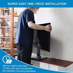 - SUPER SIMPLE ONE-PIECE INSTALLATION-This one-piece table top TV stand comes with easy-to-use instructions and all necessary accessories for quick and easy installation within 10 minutes. Unnecessary to put holes in the wall to mount it and conveniently move it to fit where it needed to go!