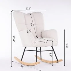 - 【Perfect Size】With an overall dimension of 27.6″W x 35″D x 37.4″H and a seat dimension of 18.5″W x 18.1″D x 18.5″H, this rocking chair is suitable for individuals weighing up to 250lbs. Its compact size and versatile design make it an excellent choice for any home, office or nursery.