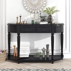 - [Ample Storage Space] This classic style console table has four drawers and one shelf to offer enormous storage to support debris basket, pot culture, books, etc. Top board can place your beautiful vase, cute photos and decorations, additional knickknacks or a lamp.