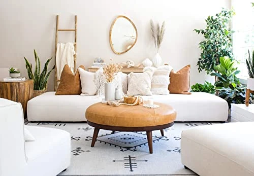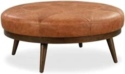 - Each hide is unique and will vary in depth of color. Non-skid rubber foot pads. High-density foam with polyester filling