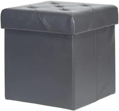 - Upholstered in high quality easy-care faux leather with a dark CHARCOAL colored finish and box stitching on top for a timeless yet classy look — the cover is filled with high rebound sofa sponge to provide a firm yet soft foam padding on top for added sit down comfort, making it ideal for use as a coffee table stool