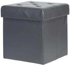 - Upholstered in high quality easy-care faux leather with a dark CHARCOAL colored finish and box stitching on top for a timeless yet classy look — the cover is filled with high rebound sofa sponge to provide a firm yet soft foam padding on top for added sit down comfort, making it ideal for use as a coffee table stool