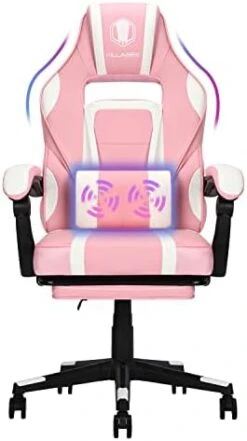 - ★ 【luxurious comfort with massage lumbar Cushion】 – Boasting a thick soft Seat cushion – Retractable padded footrest – thickened armrests and Ultra High backrest which gently hugs your body while aligning and supporting your spine and neck – Our gaming chair provides ultimate comfort. The adjustable lumbar Cushion with the innovative USB electric massager implant effectively relieves fatigue and takes your comfort level to luxurious heights