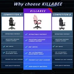 - ★ 【RISK free purchase】 – Offering you excellent after-sales service with a customer support team ready to assist you with any queries you may have and 1 year on parts – You can order your massage reclining gaming chair by KILLABEE today with peace of mind! Click “add to cart” now and gift yourself with the most comfortable and innovative chair you’ll never want to get up from