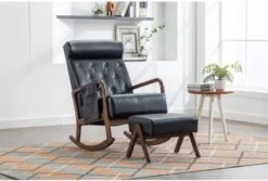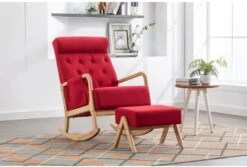 - [Sturdy & Durable]: The base of our living room chair is made of rubber wood, the material is hard and the structure is stable. And the armrest polishing and painting process, no burr, protect your skin. Our rocking chair with ottoman can be used a long time. Weight capacity: 300 lb.