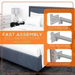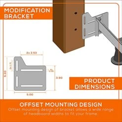 - EASY TO ASSEMBLE, Bed Frame Bracket instructions included with product. Offset mounting design of bracket allows a wide range of headboard widths to fit your frame.