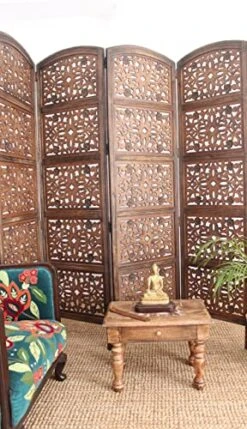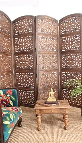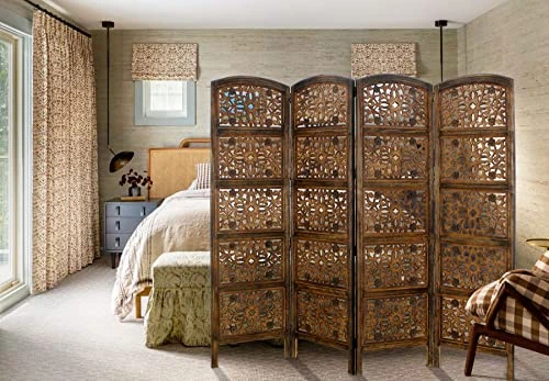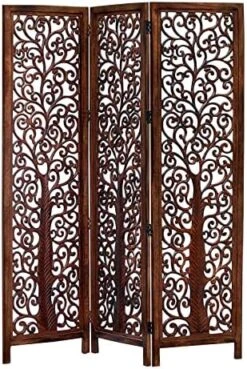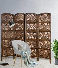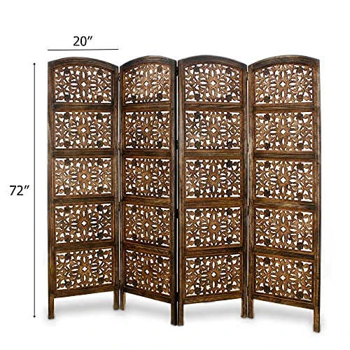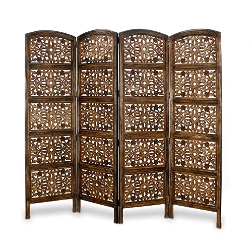 - DECORATIVE: This traditional design in an antique brown finish will add old world charm and elegance to any room with any décor. This intricately designed screen is hand carved. Each panel is hand finished and polished. The rounded top and rich brown finish will turn your home into a designer showcase. This great global bazaar style will make for a decor object on its own standing in the middle of the room or against a wall. Pair it with your furnishings to make it your palace.
