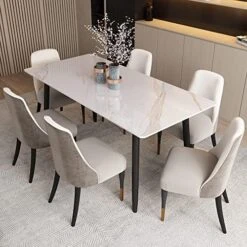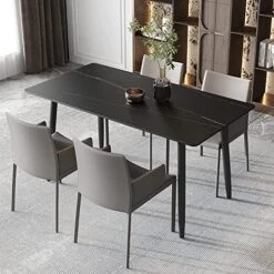 - 🌟【High-Quality Tabletop Material】: The fashionable marble-like tabletops are made from new sintered stone material, crafted through high-pressure rock burning at 1200°F, resulting in a stylish and durable surface.