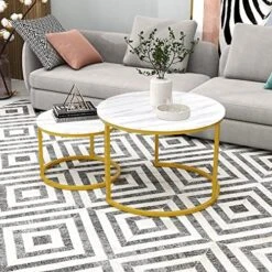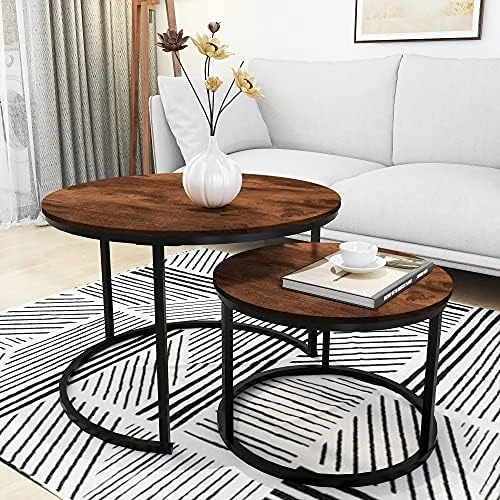 - [Product Dimension] Nesting coffee tables include a large table (Ξ¦ 27.36x H 19.09inch) and a small table (Ξ¦ 19.49x H 13.98inch). The small table can be placed under the big table to save space when not in use.