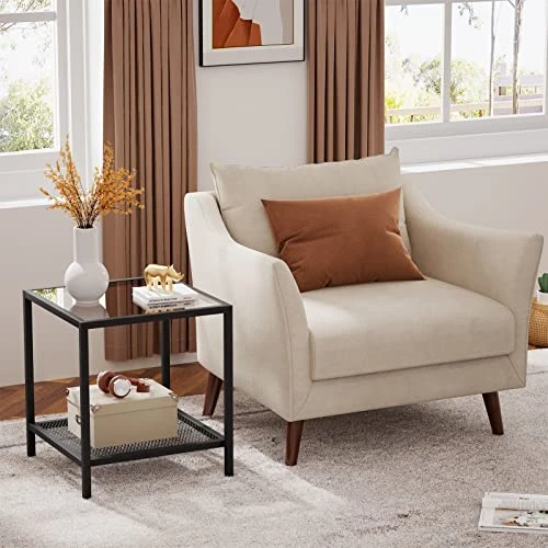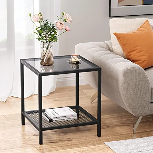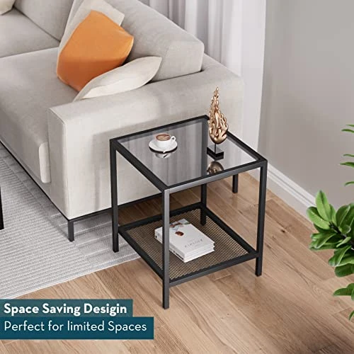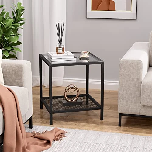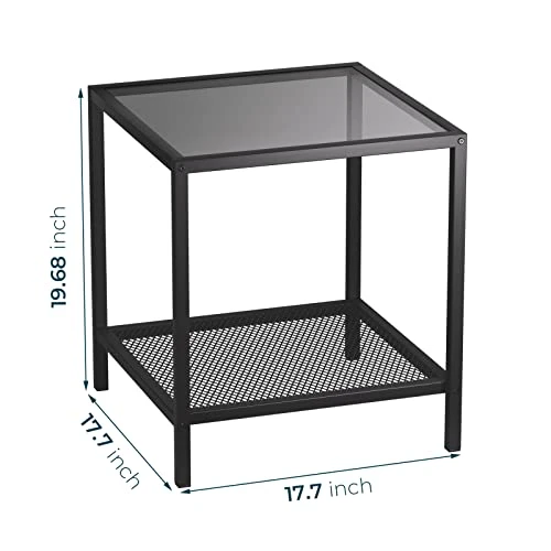 - Stunning Minimalism: With a 17.7 x 17.7 x 19.7in decent size, take your home aesthetics to the next level with a modern side table that unites sleek, black-colored metal and a tempered glass top into one minimalist-yet-functional piece.