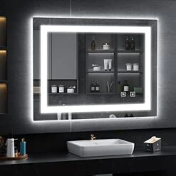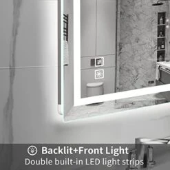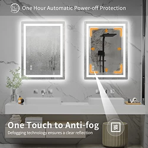 - 【Anti-fog & Automatic Power-off Protection】With upgraded anti-fog film, the fog-proof surface occupies 60% of the mirror, larger than other led mirrors. The mirror’s defogger and light switches can be controlled separately. Users can turn on the defogger switch for only 5-10 minutes to ensure a clear reflection. The power will automatically turn off after over one hour of continuous work to prevent overheating.