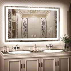 - 【3 Color Lighting and Brightness Dimmable】This multi-functional bathroom vanity mirror has 3 color temperature lights: warm(3000K), natural (4500K) and white(6000K).The brightness of the light can be adjusted from 10% to 100% with a touch sensor button on the mirror. The memory function allows the last color temperature and brightness set to be recalled when you turn on the button to avoid the trouble of repeated adjustment.