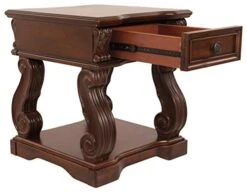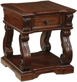 - CURVACEOUS SILHOUETTE: End table crafted from wood, manmade wood, veneers and cast resin; Drawer with dovetail construction and ball-bearing slides