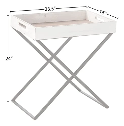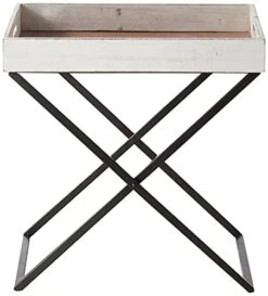 - HANDSOMELY CRAFTED: Table is made of solid wood, with a natural and antique white finish. Designed with cutout handles and a metal base in an antique black finish