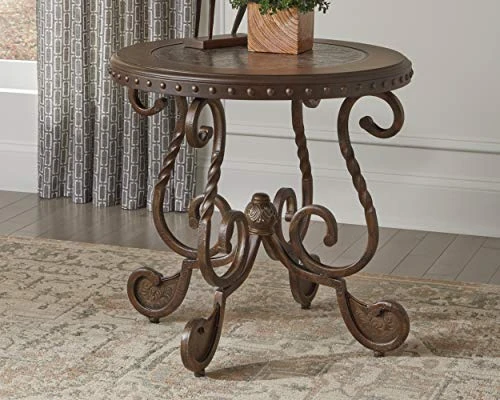 - HANDSOMELY CRAFTED: Accent table stand is made of manmade wood and metal. Accented with nailhead trim