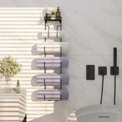 - Top shelf idea for folded hand towels, clothing or bathroom products