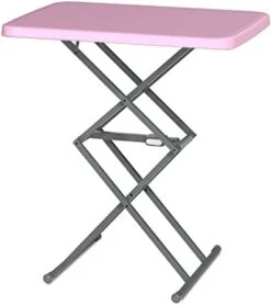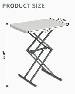 - Sturdy and Well Made – The steel legs are designed in triangle, which makes the table more stable. Less wobble when using and holds up really well. The top is blow-molded Polyethylene that is easy to clean and heavy-duty. And the tabletop size (25” L x 17” W) is large enough for daily use.