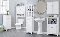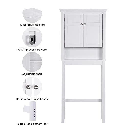 - STYLISH BATHROOM Organizer Over Toilet: This Over The Toilet Cabinet Features with Decorative Molding and Double Door Design Brings a Modern and Elegant Look to any Home. Purchase This Decorative Bathroom Cabinet by Itself or With Other Items for A Cohesive Update to Your Bathroom’s Decor.