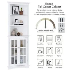 - EASY ASSEMBLY: Enjoy a relaxing and pleasant installation time with all necessary hardware, tools and detailed assembly instructions, then you can get a practical tall corner bathroom cabinet. Overall Size: 23.62″(W) x 12.4″(D) x 31.69″(H).