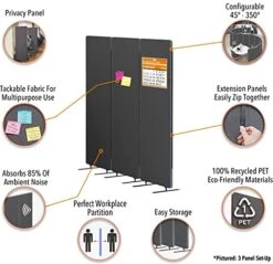 - REDUCE AMBIENT NOISE: By absorbing 85% of ambient noise, these freestanding room dividers help promote a quiet work environment- so you can stay focused and block out distractions.