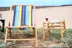 - Bamboo canvas beach sling chair. Easy removable canvas for washing. Enjoy lounging out in your backyard or on the beach with these sling chairs. Weight capacity holds up to 300 pound. Foldable, lightweight and portable. Folds neatly for easy transport and storage.