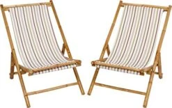 - Bamboo canvas beach sling chair. Easy removable canvas for washing. Enjoy lounging out in your backyard or on the beach with these sling chairs. Weight capacity holds up to 300 pound. Foldable, lightweight and portable. Folds neatly for easy transport and storage.