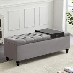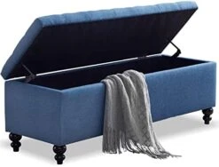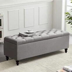 - 【ELABORATELY-DESIGNED】In addition to its actual function,our bench with storage can also meet your decorative needs no matter where you choose to place it. Rectangular frame and button-tufted design,neat stitches demonstrates our ottoman storage a simple style.Through adding your bedroom, living room, study room,entrance,staircase an extra touch of sophistication to bring you more comfort.