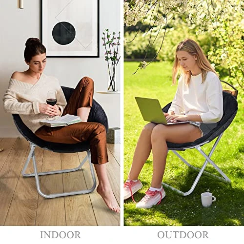 - Easy to Fold –The saucer chair came completely assembled so you can bring it anywhere. And it folds up and packs away very nicely in case you need to utilize the space and then we just pull it back out when we have more people come over