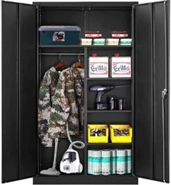 - ποΈγAdjustable Shelf Heightγ: Our metal storage cabinets have four adjustable height shelves, which are highly adaptable and convenient. Simply adjust the spacing between shelves and you can easily create an internal space in the storage cabinet that meets your storage needs.