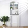 - The 3 open shelves provides storage for toilet paper, tissues, and other essentials