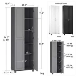 - The Storage Cabinet ships flat to your door and 2 adults are recommended to assemble. Each shelf will hold up to 35 lbs. Assembled dimensions: 74.25-75βH x 23.6875βW x 15.375βD