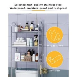 - 【EASY TO ASSEMBLE AND USE】This bathroom storage rack has a simple structure, and you can easily assemble it on the toilet rack; it can be fixed to the wall without drilling holes, which is more stable and safe to use and protects the wall.