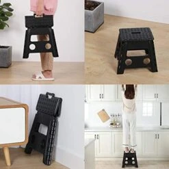 - 【2020 Anti-slip Design】49pcs unique rubber dots textured platform and Anti-skid foot-pads design, not easy to slip, makes the folding step stools safe for everyone, including kids. Especially around the kitchen bar, bathroom areas.