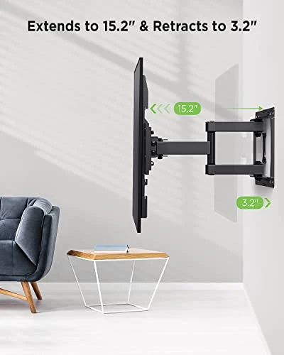 Totnz Full Motion Wall Mount For Most 26-55 Inch TVs Articulating Dual Arms Swivel Extension Rotation Tilts LED LCD OLED Flat Curved Screen TVS & Monitors, Medium, Black, (TZMFK4)