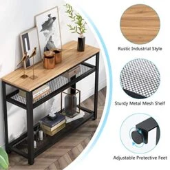 - AMPLE STORAGE SHELF: Featuring 3 generous open shelves, use the 100cm long console table with 2 mesh shelves in various rooms, suitable for put something decorative like vase, photo frame, books, and so on.