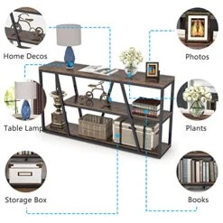 - 【Reliable Quality & Solid Construction】: Crafted from high grade particle board and solid metal (0.79″ by 0.79″ width), this tribesigns sofa table can withstand up to 130 lbs; the adjustable foot pads can be used in the uneven ground and prevent floor from scratch. Thanks to it’s robust structure, this rustic entryway table will serve you for long lasting use