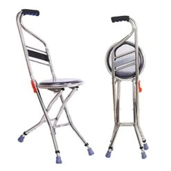 - QUAD LEG STABILITY:The cane adds an extra fourth leg for support,making it sturdier than 3 legged chairs.Quality sponge handle,which is comfortable to hold,sweat-absorbent.comfortable grip,sweat absorption and anti – slip.With a red lock buckle to fix the closed state and prevent seat slipping.